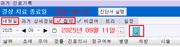 자동차 첩약 조회는 과거진료기록 탭 내원일 처방, 첩약, 진료요약 퀵 메뉴 에서 확인 가능합니다.